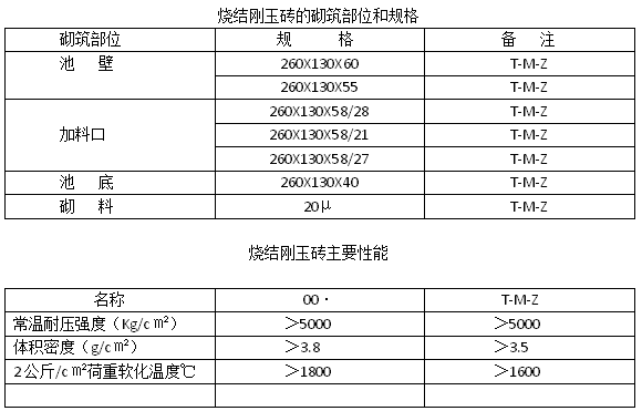 1.在玻璃頁面處使用燒結(jié)剛玉磚時(shí)應(yīng)用風(fēng)冷卻,使池壁外表面溫度維持在50~100℃,以保證使用效果。在1400℃以下工作可采用保溫措施,如池窯底部。