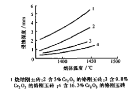 圖2示出了不同Cr203含量的鉻剛玉磚與剛玉磚被玻璃熔渣侵蝕的深度。試驗(yàn)表明:Cr203<17%時(shí),磚中Cr203含量愈高,玻璃熔渣侵入的深度愈淺。