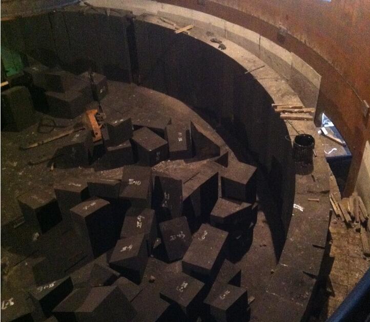 工業(yè)硅礦熱爐的爐體設(shè)計(jì)與電石、硅鐵、硅錳等鐵合金礦熱爐的爐型是有很大的不一樣的,工業(yè)硅礦熱爐為旋轉(zhuǎn)爐體,單臺(tái)5個(gè)爐眼,所以在爐襯耐火材料的砌筑上也是需要有相當(dāng)成功經(jīng)驗(yàn)的施工隊(duì)伍才能完成內(nèi)襯的砌筑工作。