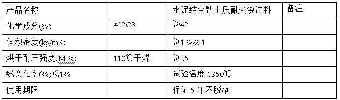 施工方式:由澆注料供貨商設(shè)計,保證使用性能。